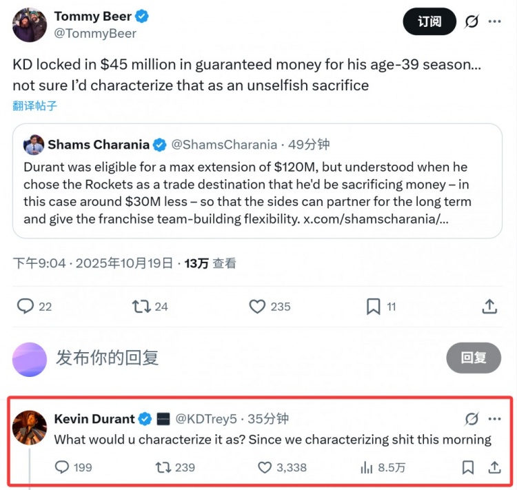 2025-10-20 01:22:06在线怼人!网友说杜兰特降薪不算无私牺牲 KD:那你管这叫什么?