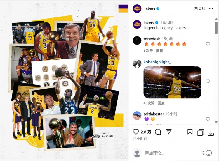 詹东在列&无浓眉!湖人官方晒队史标志人物:传奇不朽 紫金永铸